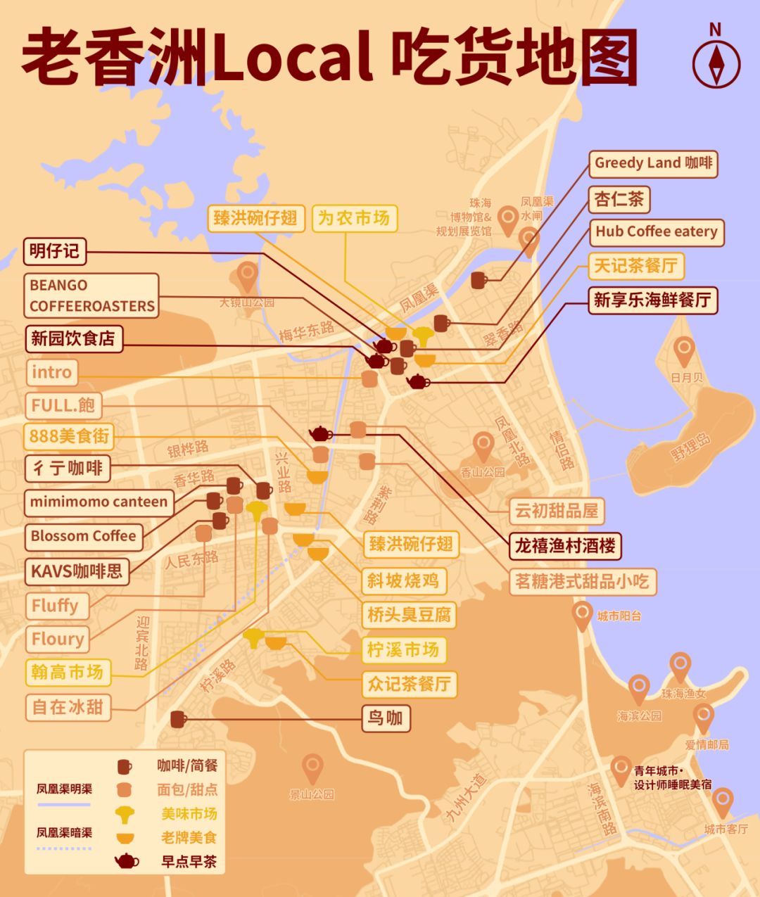 美食是最接地气的在地文化体验方式。离开人山人海,离开连锁品牌,你可以随着凤凰渠走进老香洲大街小巷,感受珠海本地的街头美食、感受珠海的烟火人家。